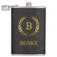 Classic and Elegant Gold on Black Personalised Hip Flask
