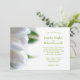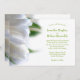 Unique and elegant white wedding invitation. Reception details printed on the back allows to cut on paper and enclosure cards. Perfect to help the environment and reduce wedding costs. The white tulips photograph on the background gives it an original and beautiful twist.