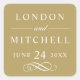 Add a polished finishing touch to your wedding favours with this classic antique gold monogram square sticker. The couple's names and wedding date are displayed in refined white typography with decorative scroll accents against a warm antique gold background. Ideal for favour bags, gift boxes, wine bottles, or envelope seals. All text is fully customisable. Coordinates with the Classic Elegant Antique Gold wedding suite.