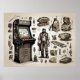 Immerse yourself in a journey through time with our exclusive Classic Arcade Retro Games Poster. Crafted with meticulous detail and resolution, this masterpiece combines classic arcade blueprints, sketchbook-style illustrations, and a touch of steampunk charm. Picture game characters, joystick controllers, and mechanical steampunk parts coming to life in a retro hand-drawn aesthetic.