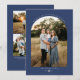 A beautifully refined Hanukkah photo card featuring a bold arch frame set against a rich blue backdrop for a timeless and elegant look. The curved greeting at the top offers warm Hanukkah wishes, while the Star of David and personalized family name and year add meaningful holiday charm. The clean, modern layout highlights your photo on the front, with the back offering space for three additional photos and a heartfelt message. A perfect choice for sharing warmth, joy, and Hanukkah happiness with loved ones.