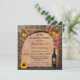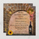 A classic wine tasting party invitation featuring a painting of a roman arch with grapes, a lantern and wine glasses and bottle with sunflower, overlooking a vineyard landscape at sunset. You can customise this invitation for any occasion.