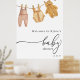 Welcome guests to your shower with this beautiful sign, featuring an adorable illustration of classic vintage baby clothing hanging on a clothesline. Add the guest of honour's name, shower date and custom welcome text using the fields provided.