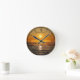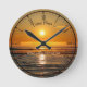 Wall clock featuring a sunset on the beach with your custom texts. The hour indication is optional and can be deleted if you do not need it.