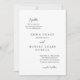 Elegant wedding invitation featuring a simple, minimal typographic design. Accents words are in a script typography and the layout is offset for a modern touch. The template features text on the back for an all in one invitation, or you may delete the text to leave the back blank. The colour theme is black and white and may be changed in the design editing tool. This design is great whether you are having an informal or formal wedding.