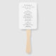 Elegant wedding program hand fan featuring a simple and classic design with your event details in traditional serif and elegant script fonts.