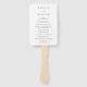 Elegant wedding program hand fan featuring traditional serif fonts in a simple layout.