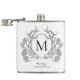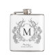 Classic Black and White Floral Crest Monogram Hip Flask