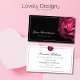 The design features a pretty large red rose on the front and a small one on the back, on a plain black and white background with a fine decorative frame.