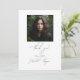 Express heartfelt gratitude with this elegant black and white modern graduation thank you card. The front features a sophisticated photo of the graduate, paired with stylish handwritten script and classic typography. The back showcases a collage of four personal photos along with a heartfelt thank you message, creating a warm and personalised touch. Perfect for high school or college graduates, this minimalist design is fully customisable to celebrate your special day with timeless charm.
