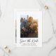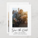 Elegant wedding save the date card featuring a simple and minimal design with "Save the Date" in a modern typography along with your event details below your favourite vertical photo. The back has a second picture along with an optional line of text over the bottom of the picture. The colour theme is black and white and may be changed in the design editing tool. This design is great whether you are having an informal or formal wedding.