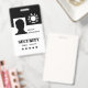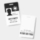 A classic and trendy black and white name badge featuring your personalised photo, barcode and logo template. Easily customise this badge to your brand.
