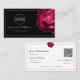 Classic Black and White Red Rose with Logo QR Code Business Card