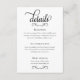 Provide your wedding guests with all the important information they need, with this elegant black and white wedding details enclosure card. Easily customisable, this card is perfect for sharing essential details such as reception location, accommodation options, and your wedding website URL. Its timeless black-and-white design complements any wedding theme, offering a sophisticated and organised way to keep your guests informed. Pair it with your invitation suite for a polished and cohesive look.