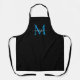 Simple Black Bright Ocean Blue Monogram Elegant Feminine Script Apron