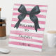 Welcome guests in style with this elegant pedestal event sign featuring a classic black bow on a chic pink and white stripe background. Perfect for adding a polished touch to your entryway, gift table, dessert bar, or photo backdrop, this sign is fully editable with your event name, guest of honour, slogan, or special message.
