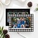 Frame your favorite photo with bold black buffalo plaid for a timeless farmhouse Christmas look. A crisp white border keeps the design clean, with a simple line for your family name and year. On the back, a modern black layout includes a photo collage and a joyful holiday message—perfect for sharing a few extra moments.