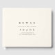 An elegant wedding guest book design featuring your names and wedding date in crisp black lettering on rich cream ivory background. Add additional custom text to the spine.