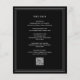 Classic style black all in one budget wedding invitation (printed on flyer paper - envelopes not included) featuring a simple and minimal design with your monogram at the top and your event details surrounded by a double border. The fonts alternate between and elegant script, a traditional serif and minimalist sans serif fonts. The back has your guest details along with an optional QR Code (if you prefer, you may remove the QR Code in the design editing tool). This invitation is great for a formal wedding.