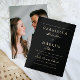 This simple and elegant wedding invitation features a black front with golden white typography, and a full photo back of the card. Please view this chic wedding collection for non photo and additional colour versions of this invitation.