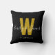 Add a personal touch to your space with this stylish home décor Modern Black and Gold Monogram Throw Pillow featuring a monogrammed initial, couple names and established date. Easily customisable to display your own name and initial, it's the perfect blend of comfort and personalisation for your home!
