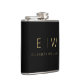 Classic Black Gold Minimalist Monogram Name Hip Flask
