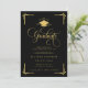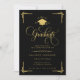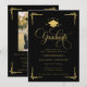 Celebrate a remarkable academic milestone with this classic black and gold graduation invitation, designed with timeless elegance and formal sophistication. Featuring ornate gold script typography, decorative corner accents, and a graduation cap emblem, this invitation makes a striking statement for a high school or college graduate.