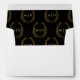 Black and gold hand-drawn growing leaf botanical art wedding envelopes. Simple oval leaves design your own monogram initials design. Classic black and gold with white text. Other colours and matching items are available. © Original leaf drawing and design by Sarah Trett for www.mylittleedenweddings.com on Zazzle.