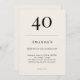 Classic black and soft ivory minimalist birthday invitation with elegant typography for a 40th celebration. Name age date time location and RSVP are fully customizable to suit formal or black tie adult events.