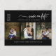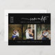 This save the date postcard features an elegant modern minimalist style of a three (tri) photo collage with a modern calligraphy of the wording "Save the Date" and elegant Serif fonts for a clean minimalist and modern look on a black background, which is a beautiful way to inform about your upcoming wedding. Announce to your family and friends you are getting married with this save the date postcard and add a personal touch with beautiful pictures of you and your soon-to-be better half. The simplicity of this design adds a touch of elegance to your wedding. It works well with many wedding themes and definitely a great addition to your wedding. Just customise the names and wording in a few easy steps and personalise the postcard with your photo of the happy couple and replace the QR Code with yours.