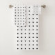 Add a classic accent to your bathroom with a stylish custom towel set including a wash cloth, hand towel, and bath towel featuring black polka dots on a white background. Buy the full set or any piece of it.