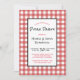 Invite your guests to your indoor or backyard pizza party with this classic invite featuring a red and white gingham check pattern with black text in a casual font style.