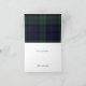 Elegant wedding thank you card, done in the traditional Black Watch plaid pattern. A wedding photograph goes on the left side of the card bordered by a a black stripe. Lovely graphics of a gold tone Luckenbooth love symbol decorates the middle of the plaid front, of the card. Tan coloured text, on the front reads Thank You. Personalise the photo, with your own, and customise the text, inside and out, to suit your needs.