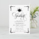 Celebrate a remarkable academic milestone with this classic black and white graduation invitation, designed with timeless elegance and formal sophistication. Featuring ornate gold script typography, decorative corner accents, and a graduation cap emblem, this invitation makes a striking statement for a high school or college graduate.