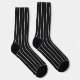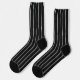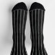 Step up your style game with these classic black dress socks featuring a sharp white pinstripe design. Perfect for adding a touch of sophistication and flair to any outfit. Whether you're dressing for a business meeting, a formal event, or just want to elevate your everyday look, these socks offer a timeless, tailored aesthetic. The bold vertical stripes elongate the leg and pair effortlessly with suits, slacks, or even dark denim. A must-have accessory for the modern, stylish wardrobe.