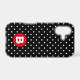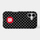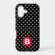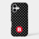 Classic black and white polka dot pattern with big red circle in the center to add your initial.