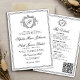 Elegant vintage crest monogram black and white classic formal traditional framed wedding invitation with QR code to website for guest information details and RSVP, featuring a classy hand lettered calligraphy script. +++++++++++ Suitable for timeless stylish old money themed weddings.