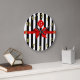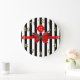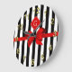 Classic Black White Stripe, Red Label, Bow Ribbon Large Clock