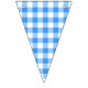 Rustic party buntings with blue and white gingham pattern.