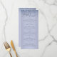This wedding program card features a deep blue background highlighted with ornate silver flourishes for a refined and formal appearance. A crest at the top elegantly frames the monogram initials, while the central section showcases the couple’s names and the complete wedding service details in a clean and organised format. The pairing of rich blue with shimmering silver creates a timeless and sophisticated design, perfect for evening weddings and classic celebrations.