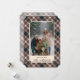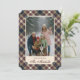 This elegant and contemporary holiday card features a plaid pattern that includes a "With Love From" message along with your family name. It showcases shades of green, dark blue, red, and ochre yellow, creating a classy and nostalgic English holiday ambiance. You can personalize the card by adding your family photo on the front and text on the back. This card is perfect for sending Christmas messages and wishes in a traditional colonial style, making it an excellent choice for a charming and sophisticated theme.