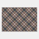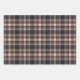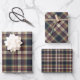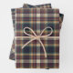 This elegant and contemporary gift wrapping paper set showcases a plaid pattern in shades of green, dark blue, yellow ochre, and red, creating a classy and nostalgic English holiday atmosphere. The paper is perfect for wrapping Christmas gifts in a classic colonial style and complements a charming country cottage or log cabin theme.