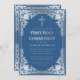 Classic Blue Faux Silver Cross Boy First Communion Invitation