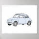 Classic Blue Fiat 500 Pencil Style Rendering Poster