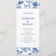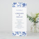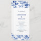 This timeless wedding program features a classic blue and white floral design inspired by traditional chinoiserie patterns. Delicate blue botanical illustrations frame both the top and bottom of the card, creating a refined and elegant border. The clean white background and modern serif font ensure your ceremony details and wedding party are easy to read and beautifully presented.
