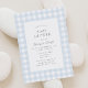 Invite friends and family to share in the joy of your little one's arrival with this elegant blue gingham baby shower invitation.