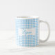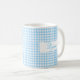 Bring a touch of timeless, rustic charm to your morning coffee or afternoon tea! This personalized mug features a vibrant blue and white gingham (checkered) pattern that evokes feelings of cozy farmhouse kitchens and sunny summer picnics.