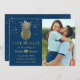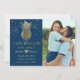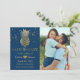 Classic Blue Gold Pineapple Photo Save the Date Card