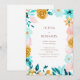 This blue green watercolor floral wedding invitation features soft botanical florals with a timeless, romantic feel. The airy layout and centered typography create a classic look that works beautifully for garden, spring, and summer weddings. Muted teal, soft blush, and warm floral accents add color without overwhelming the design. Ideal for couples looking for an elegant floral style that feels traditional yet fresh.