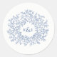 Classic blue hand drawn leaf monogram art wedding round sticker